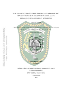 Chandra, Priyanka (2022) Pengaruh Perkembangan Kawasan Industri Terhadap Pola Pemanfaatan Lahan Di Kelurahan Lubuk Gaung Kecamatan Sungai Sembilan Kota Dumai. Other thesis, Universitas Islam Riau.