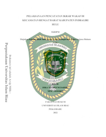 Dahsri, Dika Vivideyni (2022) Pelaksanaan Pencatatan Ikrar Wakaf Di Kecamatan Rengat Barat Kabupaten Indragiri Hulu. Other thesis, Universitas Islam Riau.