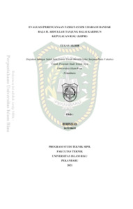 This airport is categorized as a feeder airport, because this airport is a supporter of a collecting airport and as one of the supporting services for local activities. From the blueprint for the development of Raja H.Abdullah airport for 2015-2035, the airport wants to bring in aircraft with a larger capacity, namely 2 aircraft with the ATR 72-600 type. This ATR 72-600 aircraft can accommodate 68-78 passengers, and requires a take-off distance of 1,367 m. So in this study, researchers wanted to evaluate the air side facilities at the airport to match the safe distance for the ATR 72-600 type aircraft that they wanted to import. In this final project, researchers focus on evaluating airside facilities in general. Which consists of the runway, taxiway, apron and also the thickness of the pavement. To evaluate the researchers used standards from ICAO (International Civil Aviation Organization) and FAA (Federal Aviation Administration) to determine the minimum capacity or safe distance that corresponds to the characteristics of the ATR 72-600 aircraft. Meanwhile, for the thickness of the pavement, the author uses an analytical method. From the standards and methods used by researchers, the minimum and safe distances for airside facilities are obtained in accordance with international airport security standards. Based on the calculation results in accordance with the characteristics of the planned aircraft to be imported, namely the ATR 72-600 aircraft. The runway length for landing is 1800 m, and take-off is 1550 m. Meanwhile, for Taxiway planning, there is an additional exit taxiway lane with a width of 15 m, a length of 75 m and a total taxiway and shoulder width of 25 m. while for the apron the researchers changed it into two parts, where part A was used to get off and pick up passengers with a length of 120 m and a width of 70 m. and section B for other aircraft can freely pass and not interfere with the loading and unloading process of other aircraft, with a length of 90 m and a width of 70 m B. take the longest in the calculation of one area (120 m). so that the total area of the apron is 14700 m2. For the pavement thickness, the safe thickness was obtained using the CBR 50 cm method and the FAA 30 cm method.