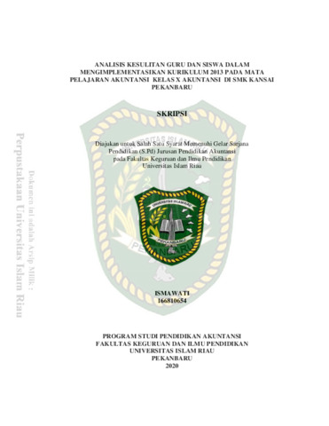 Ismawati, Ismawati (2020) Analisis Kesulitan Guru Dan Siswa Dalam Mengimplementasikan Kurikulum 2013 Pada Mata Pelajaran Akuntansi Kelas X Akuntansi Di SMK Kansai Pekanbaru. Other thesis, Universitas Islam Riau.