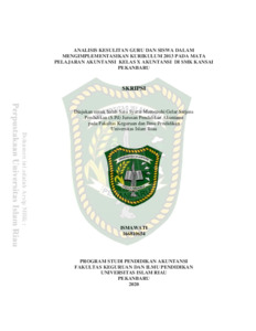This research was conducted with the aim to find out the difficulties of teacher in implementing 2013 curriculum learning and studens’ difficulties in learning in 2013 curriculum in accounting class X accounting subjects at SMK Kansai Pekanbaru. This study includes qualitative research, data collection techniques used are observation, interviews, and documentation. The data sources of the researchers were the curriculum waka of the Kansai Vocational School Pekanbaru, accounting teachers of class X accounting for the Kansai Vocational School Pekanbaru and students. In this study the data analysis is through data reduction, data presentation, and drawing conclusions. Checking the validity of the data is done by testing the credibility, triangulation and the adequacy of the reference. From the results of research in Pekanbaru Kansai Vocational School regarding the difficulties of teachers and students in implementing the 2013 curriculum in accounting subjects in accounting class X in the Kansai Vocational School Pekanbaru. The difficulty of teachers in implementing the 2013 curriculum is in the mastery of technology, the media used does not increase increasing student interest in learning, and the books that will be used in learning are not in accordance to the 2013 curriculum due to lack of mental readiness, and low motivation of students in taking accounting subjects, and the books available at SMK Kansai Pekanbaru do not match the material the learn in accounting lessons in the 2013 curriculum . which becomes the difficulty of students in following learning according to the 2013 curriculum which demands that students be more active in the learning process.