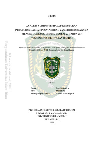 Jofendra, Rapli (2020) Analisis Yuridis Terhadap Kedudukan Peraturan Daerah Provinsi Riau Yang Berbasis Agama Menurut Undang-undang Nomor 23 Tahun 2014 Tentang Pemerintahan Daerah. Other thesis, Universitas Islam Riau.