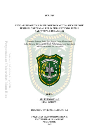 Aji, Ari Purnomo (2021) Pengaruh Motivasi Instrinsik Dan Motivasi Ekstrinsik Terhadap Kepuasan Kerja Perawat Pada Rumah Sakit Type-D Perawang. Other thesis, Universitas Islam Riau.