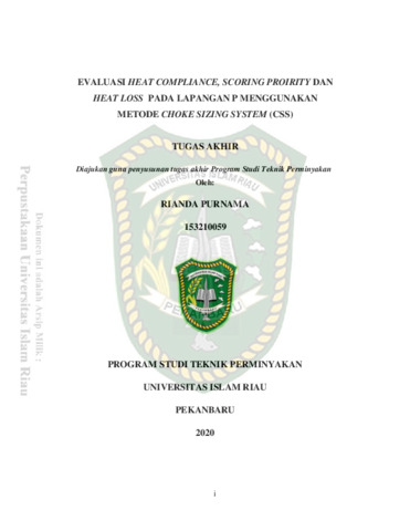 Purnama, Rianda (2021) Evaluasi Heat Compliance, Scoring Proirity Dan Heat Loss Pada Lapangan P Menggunakan Metode Choke Sizing System (CSS). Other thesis, Universitas Islam Riau.