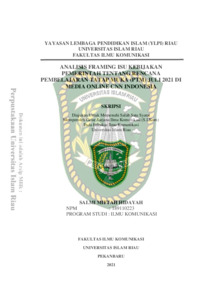Hidayah, Salmi Miftah (2022) Analisis Framing Isu Kebijakan Pemerintah Tentang Rencana Pembelajaran Tatap Muka Juli 2021 Di Media Online CNN Indonesia. Other thesis, Universitas Islam Riau.