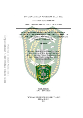 Rubama, Fadli (2022) Optimalisasi Pengelolaan Badan Usaha Milik Desa(BUMDES) Dalam Meningkatkan Kesejahteraan Masyarakat Di Desa Kuntu Kecamatan Kampar Kiri Kabupaten Kampar. Other thesis, Universitas Islam Riau.