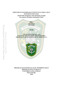 Agustina, Agustina (2020) Implementasi Kebijakan Penetapan Desa Adat Di Kabupaten Siak (Studi Pada Kampung Adat Kampung Tengah Kecamatan Mempura Kabupaten Siak). Other thesis, Universitas Islam Riau.