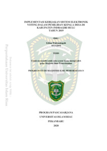 Wahyuningsih, Erlina (2020) Implementasi Kebijakan Sistem Elektronik Voting Dalam Pemilihan Kepala Desa Di Kabupaten Indragiri Hulu Tahun 2019. Masters thesis, Universitas Islam Riau.
