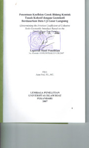 Puri, Anas (2007) Penentuan Koefisien Gesek Bidang Kontak Tanah Kohesif dengan Geotekstil Berdasarkan Data Uji Geser Langsung. Universitas Islam Riau. (Unpublished)