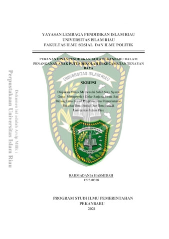 Hasmidah, Rahmadania (2022) Peranan Dinas Pendidikan Kota Pekanbaru Dalam Penanganan Anak Putus Sekolah Di Kecamatan Tenayan Raya. Other thesis, Universitas Islam Riau.