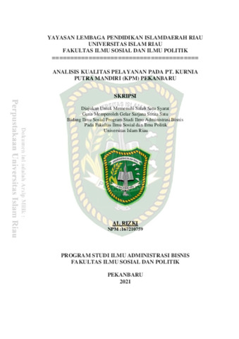 Rizki, Al (2021) Analisis Kualitas Pelayanan Pada PT. Kurnia Putra Mandiri (KPM) Pekanbaru. Other thesis, Universitas Islam Riau.