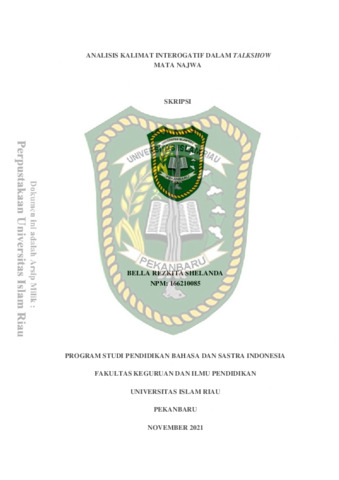 Shelanda, Bella Rezkita (2022) Analisis Kalimat Interogatif Dalam Talkshow Mata Najwa. Other thesis, Universitas Islam Riau.