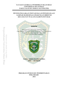Satria, Moh Zulfie (2021) Penyelenggaraan Inovasi Dalam Pengelolaan Sampah Oleh Dinas Lingkungan Hidup Di Kecamatan Tualang Kabupaten Siak. Other thesis, Universitas Islam Riau.