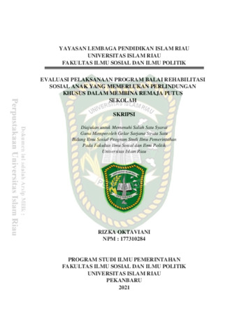Oktaviani, Rizka (2021) Evaluasi Pelaksanaan Program Balai Rehabilitasi Sosial Anak Yang Memerlukan Perlindungan Khusus Dalam Membina Remaja Putus Sekolah. Other thesis, Universitas Islam Riau.