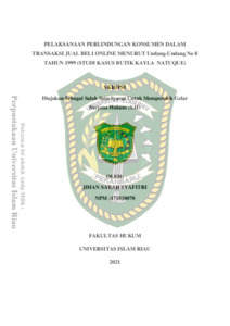 Syafitri, Jihan Sarah (2022) Pelaksanaan Perlindungan Konsumen Dalam Transaksi Jual Beli Online Menurut Undang-Undang No 8 Tahun 1999 (Studi Kasus Butik Kayla Natuque). Other thesis, Universitas Islam Riau.