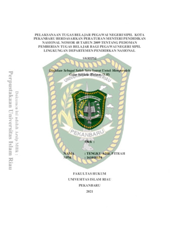 Pelaksanaan Tugas Belajar Pegawai Negeri Sipil Kota Pekanbaru Berdasarkan Peraturan Menteri Pendidikan Nasional Nomor 48 Tahun 2009 Tentang Pedoman Pemberian Tugas Belajar Bagi Pegawai Negeri Sipil Lingkungan Departemen Pendidikan Nasional