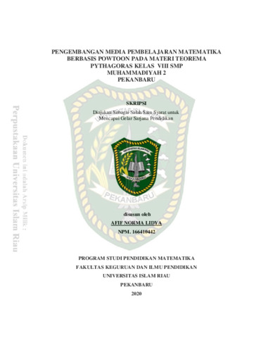 Lidya, Afif Norma (2020) Pengembangan Media Pembelajaran Matematika Berbasis Powtoon Pada Materi Teorema Pythagoras Kelas VIII SMP Muhammadiyah 2 Pekanbaru. Other thesis, Universitas Islam Riau.