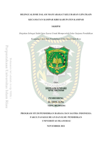 Sundari, Meylani (2021) Bilingualisme Dalam Masyarakat Kelurahan Lipatkain Kecamatan Kampar Kiri Kabupaten Kampar. Other thesis, Universitas Islam Riau.