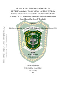 Febria, Nurul (2022) Kelaiklautan Kapal Penumpang Dalam Penyelenggaraan Transportasi Laut Di Indonesia Berdasarkan Undang-Undang Nomor 17 Tahun 2008 Tentang Pelayaran (Studi Kasus Pada Administrator Pelabuhan Kelas I Dumai Dan Kelas IV Bengkalis). Other thesis, Universitas Islam Riau.