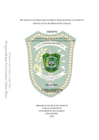 Mahendra, T Surya (2022) Pelaksanaan Perjanjian Simpan Pinjam Dengan Jaminan Fidusia Pada BUMDES Koto Tinggi. Other thesis, Universitas Islam Riau.