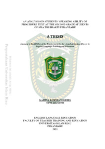 Marbes, Karina Kurnia (2021) An Analysis On Students Speaking Ability Of Procedure Text At The Second Grade Students Of SMA Tri Bhakti Pekanbaru. Other thesis, Universitas Islam Riau.
