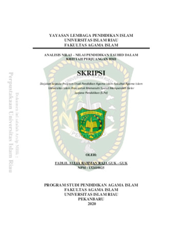 Raja Guk - Guk, Fadlil Aulia Rahman (2020) Analisis Nilai–Nilai Pendidikan Tauhid Dalam Khittah Perjuangan HMI. Other thesis, Universitas Islam Riau.