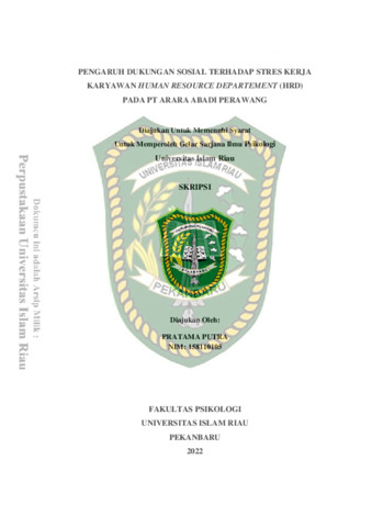 Putra, Pratama (2022) Pengaruh Dukungan Sosial Terhadap Stres Kerja Karyawan Human Resource Departement (HRD) Pada PT Arara Abadi Perawang. Other thesis, Universitas Islam Riau.