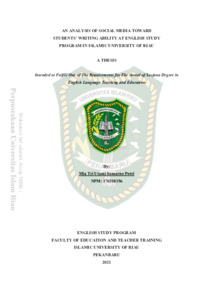 Putri, Mia Tri Utami Sumarno (2021) An Analysis Of Social Media Toward Students’ Writing Ability At English Study Program In Islamic University Of Riau. Other thesis, Universitas Islam Riau.