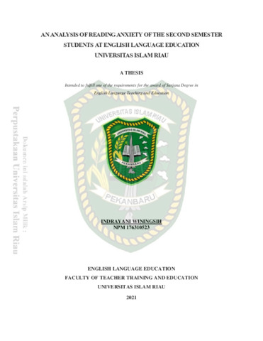 Winingsih, Indrayani (2021) An Analysis Of Reading Anxiety Of The Second Semester Students At English Language Education Universitas Islam Riau. Other thesis, Universitas Islam Riau.