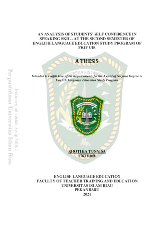 Tunnisa, Khotika (2021) An Analysis Of Students’ Self Confidence In Speaking Skill At The Second Semester Of English Language Education Study Program Of FKIP UIR. Other thesis, Universitas Islam Riau.