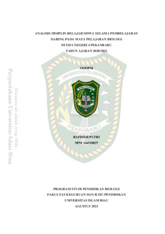 Putri, Rafidah (2021) Analisis Disiplin Belajar Siswa Selama Pembelajaran Daring Pada Mata Pelajaran Biologi Di SMA Negeri 4 Pekanbaru Tahun Ajaran 2020/2021. Other thesis, Universitas Islam Riau.