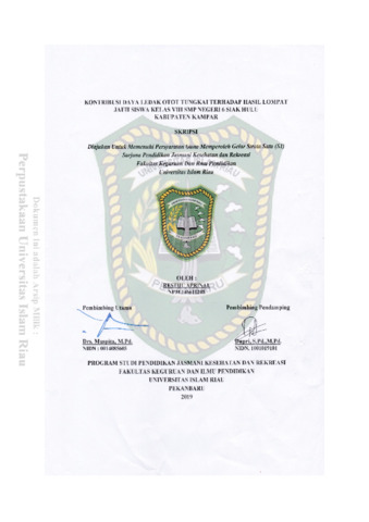 Aprinal, Resthu (2020) Kontribusi Daya Ledak Otot Tungkai Terhadap Hasil Lompat Jauh Siswa Kelas VIII SMP Negeri 6 Siak Hulu Kabupaten Kampar. Other thesis, Universitas Islam Riau.