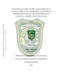 Pernanda, Apriani (2022) Pengembangan Media Pembelajaran Berbantuan Aplikasi Adobe Flash Cs6 Berorientasi Kemampuan Berpikir Kritis Pada Materi Sistem Persamaan Linier Tiga Variabel (SPLTV) Kelas X SMA. Other thesis, Universitas Islam Riau.