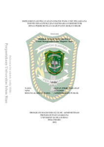 Harahap, Alfan Fikri (2022) Implementasi Pelayanan Online Pada Unit Pelaksana Teknis Dinas Pengujian Kendaraan Bermotor Dinas Perhubungan Kabupaten Rokan Hilir. Masters thesis, Universitas Islam Riau.