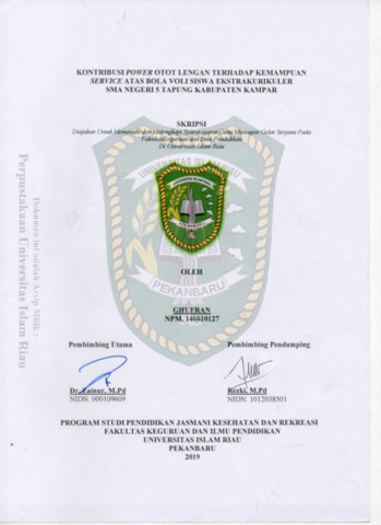 Ghufran, Ghufran (2020) Kontribusi Power Otot Lengan Terhadap Kemampuan Service Atas Bola Voli Siswa Ekstrakurikuler SMA Negeri 5 Tapung Kabupaten Kampar. Other thesis, Universitas Islam Riau.