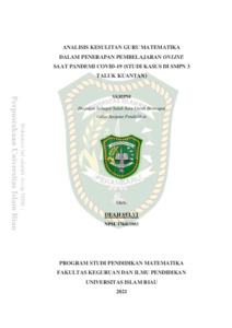 Selvi, Deah (2021) Analisis Kesulitan Guru Matematika Dalam Penerapan Pembelajaran Online Saat Pandemi Covid-19 (Studi Kasus Di SMPN 3 Taluk Kuantan). Other thesis, Universitas Islam Riau.