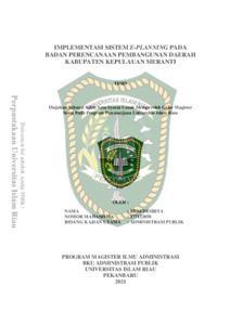 Desrita, Reni (2022) Implementasi Sistem E-Planning Pada Badan Perencanaan Pembangunan Daerah Kabupaten Kepulauan Meranti. Masters thesis, Universitas Islam Riau.