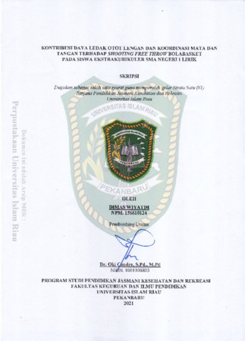 Wiyatdi, Dimas (2021) Kontribusi Daya Ledak Otot Lengan Dan Koordinasi Mata Dan Tangan Terhadap Shooting Free Throw Bolabasket Pada Siswa Ekstrakurikuler SMA Negeri 1 Lirik. Other thesis, Universitas Islam Riau.