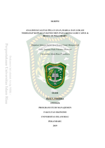 Nofrika, Fenty (2020) Analisis Kualitas Pelayanan, Harga Dan Lokasi Terhadap Kepuasan Konsumen Pada Kedai Agri Cafee & Resto Di Pekanbaru. Other thesis, Universitas Islam Riau.