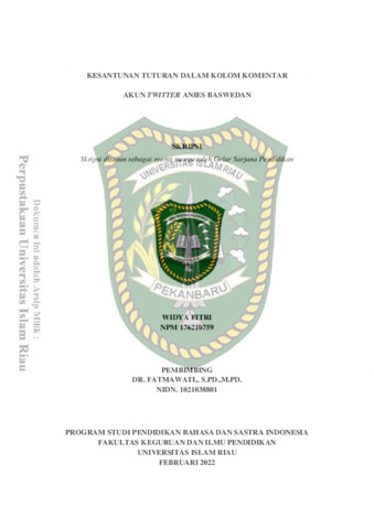 Fitri, Widya (2022) Kesantunan Tuturan Dalam Kolom Komentar Akun Twitter Anies Baswedan. Other thesis, Universitas Islam Riau.