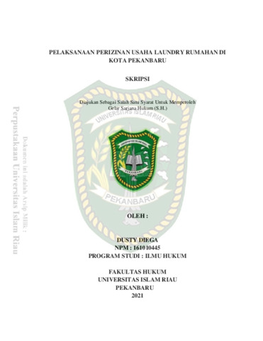 Diega, Dusty (2021) Pelaksanaan Perizinan Usaha Laundry Rumahan Di Kota Pekanbaru. Other thesis, Universitas Islam Riau.
