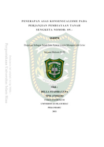 Ulfa, Della Syafira (2021) Penerapan Asas Konsensualisme Pada Perjanjian Pembiayaan Tanah Sengketa Nomor: 09. Other thesis, Universitas Islam Riau.