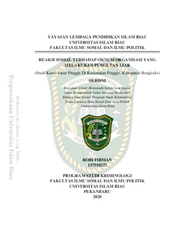 Firman, Roby (2020) Reaksi Sosial Terhadap Oknum Organisasi Yang Melakukan Pungutan Liar (studi Kasus Pasar Pinggir Di Kecamatan Pinggir, Kabupaten Bengkalis). Other thesis, Universitas Islam Riau.
