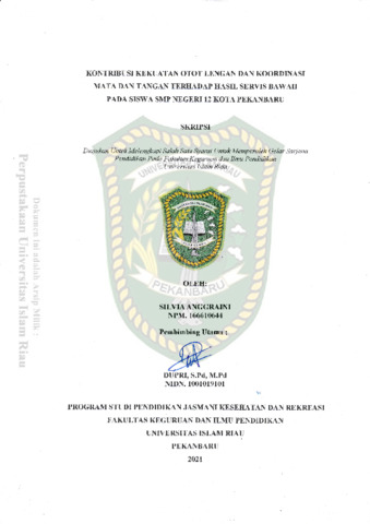 Anggraini, Silvia (2021) Kontribusi Kekuatan Otot Lengan Dan Koordinasi Mata Dan Tangan Terhadap Hasil Servis Bawah Pada Siswa SMP Negeri 12 Kota Pekanbaru. Other thesis, Universitas Islam Riau.