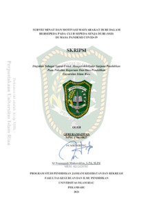 Ramadhan, Geri (2021) Survei Minat Dan Motivasi Masyarakat Duri Dalam Bersepeda Pada Club Sepeda Senja Duri (SSD) Di Masa Pandemi Covid-19. Other thesis, Universitas Islam Riau.