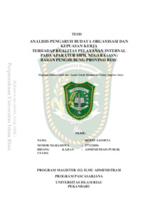 Sasmita, Henny (2021) Analisis Pengaruh Budaya Organisasi Dan Kepuasan Kerja Terhadap Kualitas Pelayanan Internal Pada Aparatur Sipil Negara (ASN) Badan Penghubung Provinsi Riau. Masters thesis, Universitas Islam Riau.
