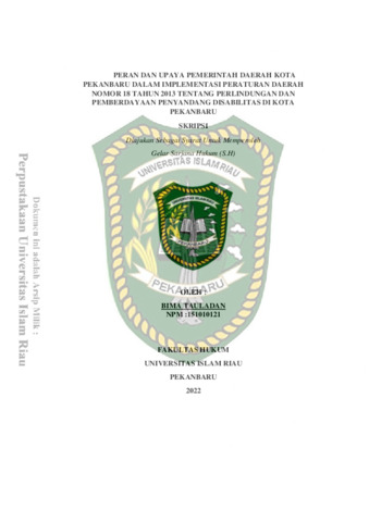 Tauladan, Bima (2022) Peran Dan Upaya Pemerintah Daerah Kota Pekanbaru Dalam Implementasi Peraturan Daerah Nomor 18 Tahun 2013 Tentang Perlindungan Dan Pemberdayaan Penyandang Disabilitas Di Kota Pekanbaru. Other thesis, Universitas Islam Riau.