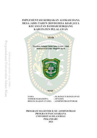 Bangsawan, M. Bangun (2021) Implementasi Kebijakan Alokasi Dana Desa (ADD) Tahun 2019 Di Desa Kiab Jaya Kecamatan Bandar Seikijang Kabupaten Pelalawan. Masters thesis, Universitas Islam Riau.