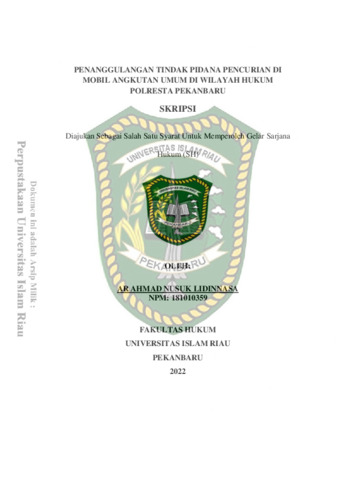 Lidinnasa, Ar Ahmad Nusuk (2022) Penanggulangan Tindak Pidana Pencurian Di Mobil Angkutan Umum Di Wilayah Hukum Polresta Pekanbaru. Other thesis, Universitas Islam Riau.