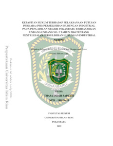 Saputri, Thasa Indah (2022) Kepastian Hukum Terhadap Pelaksanaan Putusan Perkara (PHI) Perselisihan Hubungan Industrial Pada Pengadilan Negeri Pekanbaru Berdasarkan Undang-Undang No. 2 Tahun 2004 Tentang Penyelesaian Perselisihan Hubungan Industrial. Other thesis, Universitas Islam Riau.